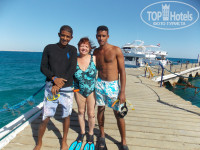Чудесные мальчики на пирсе-Дельфин, Ахмед, Африкано. Каждый день сопровождали нас плавать, показывали рифы. Ахмед поймал черепаху, когда та за мной втопила, а чуть воды не нахлебалась с перепугу))) Импозантный Иван-капитан катает на яхте. Хитёр и соблазнителен))