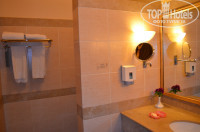 Номер: 4 односпальные кровати, детские кровати стоят за выступами стены, отделены шторами. В номере тепло, но мне не хватало освещенности и при дневном свете, и особенно при искусственном освещении. Телевизор без USB выхода, с двумя русскоязычными каналами, мини-бар. Хороший кондиционер, который греет комнату. Вообще планировка отеля такова, что номера смотрят во внутренний двор, защищены от ветра, ну и ,конечно, вторая линия, поэтому нет ветра с моря.