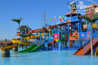 Аквапарк очень и очень понравился!! Отвозили раз полчаси на автобусе или микроавтобусе, ехать около 10 минут. Для детей много горок и для малышей, и для детей постарше. Тех, кто выше 1,2 м пускают на многие взрослые горки, даже на страшные для меня с ковриком(сын с мужем катались, я со страхом глядела). Взрослые горки тоже понравились. Но двойные подушки в некоторых трубах застревали, например в "Черной дыре", я с ребенком застряла четыре раза(мы оба стройной комплекции), а потом одна хорошо проехала. На семейную горку пускают с маленькими детьми на 4-х местных ватрушках, дочка была довольна. Народу было мало. Перерыв горок на обед для посетителей и технический для горок вроде с 12 до 13. Стоимость включена в стоимость путевки в отель, но наверно пускают из других отеле т.к. при входе указаны расценки: стоимость в аквапарк 650LE примерно 3000 руб. на день на семью 2+2.