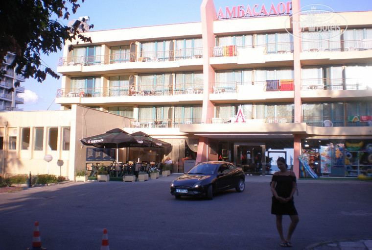 Море очень близко, надо было спустится по лесенке и перейти дорогу, и вот вам пляж, правда платные лежаки и зонтики, мы как правило брали только зонтик и привязывали к нему платок, тем самым застолбили его на весь день, если нечего не оставлять то могли все убрать и если вы ушли покушать, то придется снова покупать. Отель очень тихий, т.к. находится на самом краю курорта, а в центре курорта ночами играет музыка и очень мешала людям в отелях, так что Амбасадор отличный по своему расположению. На счет вай фая, ходили в отель Шипка который находится в 5 минутах от Амбасадора, и там бесплатно сидели в интернете. Вечерами гуляли вдоль всего побережья, там очень много разных палаток со всем возможными сувенирами итд.итп, также на побережье в 10 минутах ходьбы Макдональдс.