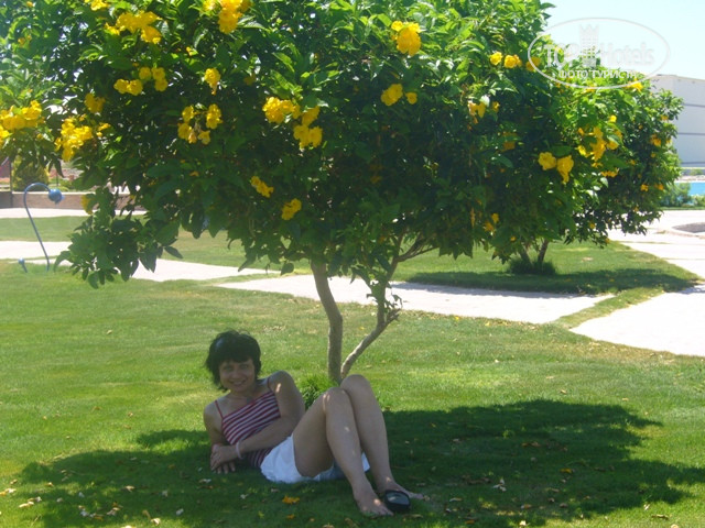 Территория отеля большая, номера просторные, всё работает!Но нет той шикарной обстановки, которую мы видели в отелях 5 звёзд. Здесь всё просто, но со вкусом.Уборка и смена белья действительно каждый день(бельё и полотенца белоснежные!).Лебедей не делают,даже за чаевые. На территории чисто, посажено много цветущих и обычных кустарников, пальмочек и пальм, трава газонная очень густая, как ковёр, хотя и есть засохшие места, но постоянно поливается и подсыпается чернозём и газон опять оживает. Бассейны на 4, потому что плитка постоянно отколупливалась(при нас чинили так детский бассейн), а в бассейне с баром дочка и другие дети резали пальцы ног об острые края отколотых плиток. Есть водопад,где хорошо можно промассировать всё тело, подставляя его под разными углами)))). Все сотрудники в отеле имеют определённые спецформы и легко понять кто есть кто там-садовник,бармен или уборщик. Пляж чистый, песок насыпной,отлив после обеда, а так действительно надо идти до глубины метров 200, но купаться там страшно, так как волны и валуны. Мы ходили в левую часть пляжа на границу с Азуром и там замечательно плавали, ходили на остров (там тоже можно купаться и песчаное дно),с масками каждый день ходили на дальний край острова смотреть рыбок и рыб- разноообразие там поражает, даже морская прогулка не производит такого впечатления, как то что имеется рядом с отелем!!!И детям, и взрослым очень интересно))))В сентябре отель будет взрывать берег и делать глубину, как это сделано в Азуре. Вообщем притензий никаких, а 4 лишь только из-за того, что слишком простенько для 5 звёзд. Телевидение в номере 3 русских канала- 1, РТР, Спорт. Смотрели канал для детей, правда он на английском, но часто показывают Тома и Джери)))Сейф- бесплано, холодильник- бесплатно. В некоторых номерах я знаю холодильник слабо работал, может им надо было прибавить, повернув регулятор?(у нас он был отломан,но вода охлаждалась. Кондиционер работал круглые сутки, без него бы было очень душно и жарко!Главный ресторан похож на столовку, хотя есть сменяемые скатерти, белоснежные льняные салфетки (жалко было даже пачкать!)))Столы,стулья деревянные. Кормили средне.Но мы всегда находили что-то вкусненькое для себя.Брала часто рыбу, был гуляш, рагу, различные запеканки,курица, криветки,салатов достаточно,выпечки достаточно, из фруктов давали только арбузы, дыни (зеленованые, иногда на вкус духами отдавали!), резанные(!!!)апельсины, грейпфрукты, свежие финики,один раз были яблоки. Свежевыжатые соки 2 доллара!!!! Часто на ужин на улице были гриль продукты-рыба, мясо, курица. Мы мучались с желудком, но не могу сказать, что из-за питания, потому что у меня желудок всё переваривает и я видела, что всё свежее, а дочка вообще макароны с сыром всё время ела. Скорее это было от пападания солёной воды или аклиматизация. В последний день хотели надуть их и поесть без браслкетов))))не так-то было-они всё примечают))))Но дети могли поужинать, их не выгоняли и даже не подходили к ним. Они то нам и приносили бесплатные напитки и коктейли в течении вечера)))) На ресепшен есть хорошие ребята (Ахмед, например), но есть и такие, которых пришлось отчитать за невнимание!Своих обслуживают вне очереди, даже если уже решал какую-то проблему, они переключаются без извинения на египтян и мило им отвечают.Это не понравилось.Анимация не очень сильная, но я з