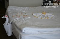 Номер чистый,мини бар пополнен, фирменные тапочки,халаты.К номеру и обслуживанию номеров претензий нет .Отдельное спасибо работнице (жаль не знаем ее имени) которая убирала 2 этаж корпуса C ,спасибо ей за живые цветы ,лебедей и сердца. Можно много говорить о питании низкий поклон шеф повару, питание было разнообразным , эту тему можно развивать, развивать и развивать мы ели : морепродукты,суши,различные блюда из мяса,множество видов сыров и колбас ну и конечно же турецкие десерты и огромное количество фруктов на любой вкус.Вечерами в барах можно было порадовать себя различными напитками от кофе с белисом до коктеля длинный остров . Теперь поговорим о территории отеля :территория просторная ,ухоженая для желающих отдохнуть тихая и спокойная релакс зона(сам пару раз спал).Чистый бассеины и девушки на роликах которые принимают заказы и 1 час в день чистят ваши солнечные очки(всем отдыхающим на удивление). Поговорим о анимации ,в первые дни может показатся что ее нет в дневное время но это не так,есть территория где аниматоры занимаются спортивными развлечениями :аквааэробика,водное поло,состязания на воде,дарц,стрельба из лука,большой теннис (за деньги),пляжный волейбол и фишка сезона джамбер что особенно понравилось дочери .А теперь о вечерних представлениях за неделю пребывания в отеле мы увидели :китайский цирк ,шоу балет Тодес,народные танцы мира,кубинские танцы и начинающая звезда украинской эстрады.А сейчас о главном в 2014 году мы снова едем в этот отель, но не одни с нами едут еще две семьи ,наши друзья , мы надеемся что для нас и для наших друзей отдых пройдет на том же уровне, а может еще и лучше так, что ждите нашу большую шумную компанию 27 мая 2014 года.