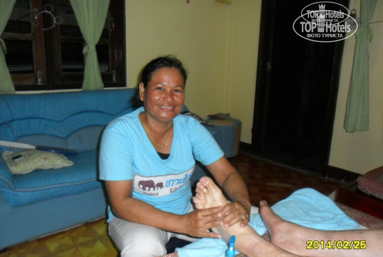 Отдыхали в этом отеле с 17.02.2014г. с Анекс-тур. Не советую этого туроператора! Прилетели в Банкгок рано утром , встретила гид , загрузили в микроавтобус и 5 часов до парома , туроператор не заботится о своих клиентах , даже по бутылочке воды не предусмотрено! ( Сравниваю с Пегасом) Водитель ни по-русски , ни по-английски не понимает! На пальцах и жестах кое как объяснились что нужно заехать в банк для обмена валюты , после обмена купили воды и ехать стало полегче. Доехали до парома , вышли и пешком на паром , микроавтобус с чемоданами на паром заехал , через полчаса были на острове , по новой загрузились в минивэн и до отеля мин.20. Подвёз к отелю , выгрузил и уехал... Заселили быстро! Но каково было наше удивление не описать : в номерах только 2-х спальные кровати! Очень скромно , но в номере есть всё необходимое. Наборов для чая - кофе нет , но можно прихватить из столовой при необходимости. Фен дают на ресепшен , сейф в комнате гидов бесплатный. Полотенца пляжные выдают на ресепшен под роспись. Мы попросили махровую простыню и нам без проблем принесли 2 шт. , меняли каждый день вместе с постельным и полотенцами. В номере только по одному полотенцу. Гель для душа , шампунь , кондиционер для волос есть , но докладывали по запросу (без проблем). Питание скромное , выбора нет , но для завтрака вполне сносно , только вот на салаты не рассчитывайте , овощи в лучшем случае могут быть в меню припущенными (полусырыми). О территории писать не буду , в отзывах есть уже. Дорога до моря меня очень порадовала: пальмы , озеро , тишина , просёлочная дорожка , по которой мы ходили босиком! Да , климат на Ко Чанге разительно отличается от Паттайи , здесь тропический , дышится гораздо легче , купальники сохли даже на балконе! Для тех кто имеет проблемы с позвоночником советую посетить массажный салон , находящийся в менее чем 100 м. от отеля ( при выходе с территории отеля поворачиваете вправо (как идти на море) , а потом налево в сторону главной дороги и справой стороны метрах в 50 будет салон) В салоне работают 2 сестры : Нэт и Нэн (их фото я выставлю). Делали там тайский массаж , аромамассаж (сухими разогретыми в мешочках травами) , совмещая с тайским (2 часа) . Убедилась ещё раз в том , что каждый мастер делает по своему , здесь мне понравился тем , что большее время занимаются обработкой точек , нежели растяжкой мышц. Цены от 250 батт в час , но если будете делать 2 часа (советую), то можно договориться о скидке. Рядом с массажным салоном находится турагенство , там мы брали тур на 5 островов по 600 батт , но собрали группу из 12 чел. и нам сделали скидку по 50 батт с чел. В тур входил трансфер до пристани и обратно 2-х разовое питание , снорклинг у 2-х островов , обезьяний остров ( только вот на этот остров мы не высаживались) , кидали обезьянкам кукурузу , бананы , делали фото. Цвет воды у каждого острова своего оттенка. Отдых на Ко Чанге не сравним с Патайей ! Очень советую отдых здесь всем , кто хочет окунуться в тишину , ласковое море и поправить здоровье (своё и детей). Приятного отдыха! Будут вопросы - пишите , отвечу!