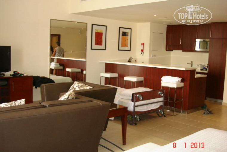 Отель находится ровно в 7ми минутах от моря через променад. Правда подъезд к отелю очень запутанный и не особо представительный. Но это основной минус Рамады. Больше серьезных нареканий к отелю лично у меня не было. Отличные завтраки и ужины. Ни разу не пожалели, что забронировали и ужины в отеле. В отличие от завтраков на ужин приходит очень мало народу и обстановка очень торжественная и приятная. Еды в большом количестве: начиная от огромного выбора салатов до морепродуктов. Давали даже лобстеров... Номер был студия: большой, простоватый, но с прекрасным видом на Марину. Персонал вежливый и улыбчивый. С уборкой тоже было все в порядке. Бассейн как и ожидалось, был на крыше. Но совсем не ожидалось, что он будет такой маленький и не очень чистый. Его посещают как правило 1 раз, больше не захочется. Но впечатление в общем осталось хорошее: кругом все улыбаются, здороваются (кроме наших туристов). Для большого мегаполиса очень даже неплохой вариант.