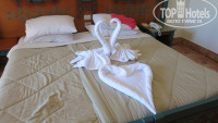Прибыли в отель около 11 утра. Тут же разместили по номерам. Предупредили на ресепшн, что если не понравится, то через час можно будет поменять номер. Так мы и поступили - один номер на первом этаже поменяли на 2-й этаж. Нам достались 277 и 278 номера рядом с пляжем (слева видно море). Небольшой минус, то что выход на местную небольшую дорогу (хотя и за густыми кустами).