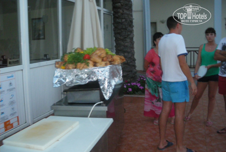 Питание: в столовой очередей почти никогда не было, мест всем хватало, еды много и разнообразная. На завтрак всегда были сыры, колбасы(правда бумажные), кашка, молочные продукты, разнообразные мюсли и шоколадные шарики, чай, кофе, овощи и арбуз. На обед: супы (очень понравились), овощи, салаты, всегда мясное, рыбное, арбуз и дыня(очень сладкая) и выпечка. Полдник: выпечка, но она очень быстро разбиралась. Ужин: тоже мясное, рыбное, салаты, овощи, арбуз, дыня и еще какой-нибудь вид фруктов(персики, виноград, гранат, мандарины или сливы) и еще на ужин всегда что-нибудь готовили отдельно на мангале(рыба, полуфабрикаты, грибы, шаурму, курицу). В течении дня можно было подкрепиться лепешками с начинкой из картошки или из сыра. В общем голодными в течении дня очень сложно остаться было даже моему привередливому мальчику 3-х лет.