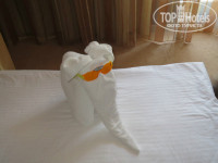 Уборка ежедневная . По игрушкам раскиданным, горничная поняла что с нами ребёнок, такую красоту ему из полотенец крутила))) Лишнего не убирала, стоят у Вас бутылки полупустые , значит пока к мусорному ведру не поставите, ничего не тронут.