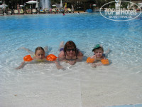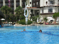 Отдыхали семьей 5 человек. Мы с мужем, младшая дочь(17лет), племянница (9лет) и внук(6лет). Разместили быстро. Поселили в бунгало, как мы и заказывали. Два номера, соединенные дверью. Убирались нормально каждый день, полотенца менялись ежедневно, бар пополнялся тоже ежедневно и даже оставляли нам какие то рекламные подарочки(напр. открыточки, салфеточку для плантшетника с надписью Letoonia Golf Resort). Маленьких уговорили один раз раз сходить в миниклуб, так они потом туда бегом бежали, потому. что там соревнования каждый день и есть возможность заработать медаль(отличный маркетинговый ход - у меня внук целый год просился опять туда съездить, хотя мы уже давно его берем с собой отдыхать,но такой реакции после отдыха в других отелях не было, да и в миниклубах он раньше один не оставался). Муж учавствовал везде, где только успевал. В один из дней весь отель разделился на две команды и эти две команды соревновались целый день(муж с дочерью были во взрослой команде, внук в детской. а племяница в двух командах сразу, а я бегала по-всему отелю и "болела" за них). Анимационная команда просто СУПЕР! Отдых прошел на "УРА", понравилось всем. СПА центр понравился, он спасал нас, когда на улице шел дождь. Кормили разнообразно, всегда можно найти, что покушать и взрослым и детям. У меня даже голова не болела, чем я сегодня буду кормить детей, я знала. что они обязательно себе что нибудь найдут. Фрукты- яблоки, апельсины, клубники было просто очень много, мороженное днем и было вечером, в конце нашего отпуска застали арбузы(очень вкусные, сладкие - много) Каждое утро свежевыжатый апельсиновый сок(в центре 4 пресса и куча апельсинов, жми сколько хочешь), соки на территории отеля пакетированные и свежевыжатые(никаких "юпи"), в баре вечером бармены делают коктельчики и детям тоже всякие разноцветные. Однажды вечером наблюдаю такую картину: мой внук подходит к стойке бара(она для него высокая) подтягивается на логтях, висит и говорит бармену: "Плиз, блу коктель но алкоголь" спрыгивает, встает на ноги(из-за стойки его практически не видно), бармен перегнулся через стойку и на русском языке говорит ему: "А почему но алкоголь, я могу тебе и с алкоголью сделать" ,вечер - народу много, все весело посмеялись. Вечерами было прохладно, так к бару подвозили тележки с пледами, всем хватало, очень удобно(мелочь, а приятно). На яхточке "ходили" по морю смотреть черепах (полный развод!!), но если не обращать внимания на то, что черепах почти не видели, то для разнообразия можно и эту экскурсию посетить.