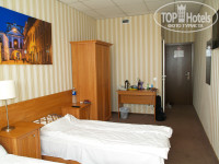 "-": почему то именно в моем номере не было покрывал на кроватях. Ковролин ужасно грязный (благо всегда с собой отельные тапочки вожу), мебель -ахтунг!-стул со скрипом развалился под 72 кг; двери шкафа скрипели на весь отель; кровати низкие, промятые (эффект гамака), узкие до безобразия (60см); окно где-то там, под потолком-что за погода на улице в окно и не увидеть; нет прикроватных бра -любители почитать на ночь-забудьте о чтиве; телек висит неудобно. Слышимость -это что-то!-если попадется храпучий сосед-забудьте о сне: слышны охи,вздохи,чихи и прочее!
