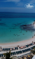 Территория отеля маленькая, но нас это не смущало, самым большим недостатком отеля является маленькая береговая линия, с которой заход в море, без коралловых отложений на дне, очень маленький. Спасением служило переход в сторону пляжа RIU Cancun, там в двух местах между береговыми кораллами были песчаные проходы с хорошим дном, а также отсутствием на пляже зонтиков, зонты расположены перед отелем и переход от моря к лежакам под зонты проходил по каменной лестнице и тротуарной плитке нагретой палящим солнцем. В остальном пляжных недостатков не было... Два больших бассейна, постоянно снующие бич-бои, большой выбор напитков, от карибских коктейлей до сухового испанского шампанского...