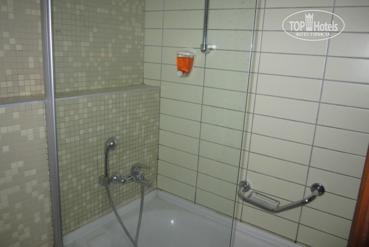 По поводу номеров, говорят первый корпус только после ремонта и даже мебелью новой пахнет, у нас был 2 корпус, одна комната, 2 кровати полуторки( мы потом в одну сдвинули) и для ребенка раскладное кресло. Ванная комната порадовала, все чистенько, все работает, однако шампуня не дают, и фен слабенький. В комнате не работал холодильник и один светильник.