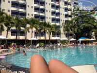 Территория отеля. Отличный бассейн, хлоркой вообще никогда не пах. НЕ достаточно лежаков, так что занимать места приходилось с утра. Много растений, плетеные беседки. Так же имеется свой бар, цены приемлемые. Маргарита, мохито алк. 200-250 батт. Но каждый день проходит какая то акция, берешь два-третий в подарок и тому подобное.