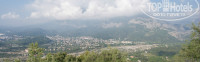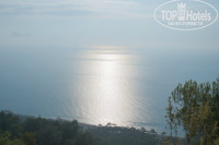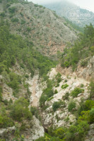 Почти рядом с отелем (если идти налево),есть дикий пляж со скалами ,чуть дальше сосновая рощица, куда приезжают местные семьи на фургончиках жарить шашлыки и валяться в гамаках.А если свернуть под мост и идти вдоль русла почти высохшей ,но когда-то мощной и бурной реки, наслаждаясь видами,можно дойти до национального парка,вход в парк платный 3 доллара с человека . Там вы увидите потрясающий величием каньон, полностью его не пройти,ближе к концу каньона стоит домик ,где предлагают переодеться в гидрокостюмы( 12 долларов) и преодолеть его вплавь,по рассказам через 20 минут можно выплыть к горным водопадам.Мы на это дело не отважились,да и к тому же начинало смеркаться и пора было отправляться в обратный путь.На обратной дороге нам на глаза попался камень с заманчивой надписью красной краской -"тропа Али.40 минут вверх до панорамы и античной башни".Этот поход был отложен до следующего дня.Счастливые и голодные мы вернулись в отель ,где поужинав улеглись спать.Утро началось для нас в 6 утра когда ,собрав рюкзаки с водой,фотоаппаратом и провиантом ,мы ринулись покорять горный массив. Дойдя до того самого "камня преткновения" ,вдохнули полной грудью воздуха и начали свой подъем ,сказать по правде,это оказалось не очень легко ,мы шли по красным указателям вверх 40 минут и порядком устали (сказался нездоровый образ жизни))))Но удовольствие ,которое ты получаешь увидев панораму, открывающуюся сверху,когда лучи солнца расползаются по горам и море сверкает как сусальное золото ,а домики поселков маленькие и трогательные,ни с чем не сравнимо.Есть там и развалины сторожевой башни и руины старого города,но информации когда были построены эти сооружения в интернете найти так и не удалось.