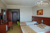 2. Разместили нас отлично, номер на 3-ем этаже с видом на море, хотя в путевке был "land view". Номер оставил приятное впечатление, хотя уборка ему пошла бы на пользу. У нас плохо уходила вода в раковине, было исправлено, и текло немного из-под ванны, не устранили. Нас это особо не парило.
