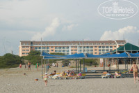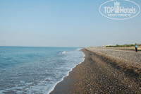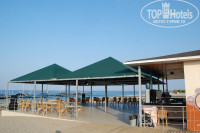 6. Пляж. Напоминает черноморские пляжи по антуражу, весьма печально. Есть бар, там наливают и можно пообедать. Песок, у моря мелкая галька. Раздевалки, туалет, душевые в наличии. Пляж убирают постоянно. Мусор посетители бросают тоже постоянно. Лежаков, матрасов, полотенец хватает.