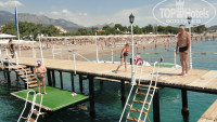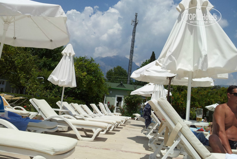 Отдыхали в отеле уже не первый раз. Решили написать отзыв. Начну по порядку. В этот раз поехали двумя семьями с двумя взрослыми детьми и одним семилетним хулиганом. А вообще ездили и вдвоем- но скучно не бывает- отель маленький и через пару дней почти все в отеле будут вам знакомы, найдете и попутчиков на экскурсии и друзей и собутыльников (это кому как по вкусу). Прилетели ночью и нас сразу заселили. Но это не всегда так- бывает приходится подождать, пока кто то выселится- но это не страшно. Если ночь- есть где поспать, если день- есть где переодеться, чтобы сходить на море искупаться. Номера конечно шикарные- два года назад был ремонт. Далеко не каждый пятак похвастает такими номерами. Уборка в номерах ежедневно. Полотенца банные меняют тоже часто. Про простыни честно говоря не знаю. Один раз точно меняли, может и больше. Все в тему, все в меру. Санузел вообще песня. С 7-30 до 9 (вроде как) завтрак. В столовой чисто, быстро все убирают. На завтрак можно выбирать сыры, сосиски всякие, булочки- пироженки, сосиски-котлетки- яички вареные... При вас готовят индивидуальный омлет (всякие начинки по желанию или просто глазунью), а так же какую нибудь выпечку- пышки- блинчики-оладьи. К ним конечно разные варенья, мед и пр. Овощи-фрукты. Чай-кофе-молоко-соки. Двигаем на море. Идти по выложенной плиткой дорожке не более 5 минут прогулочным шагом. Лежаков свободных всегда навалом. Полотенца пляжные меняй хоть каждый день (правда многие уже покоцаны нормально и выцвели- но это мелочи). Вот в море заходить без тапочек не очень приятно- разнокалиберная галька. Поэтому мы ходили купаться с пирса- он тут же на пляже. Девочки по лесенке, мальчики прыгали. На пляже можно сыграть в волейбол, покататься на банане или таблетке или на парашюте полетать. Ну или просто овощем поразлагаться- тоже тема хорошая. С полодиннадцатого становилось жарко и мы валили к бассейну- там как раз начинается всякая анимация вроде аквоаэробики, игры в дартс, стрельбы из винтовки.... Тут же стряпают классные лепешки с сыром или картошкой. А детьми в это время занимается детский аниматор. С детьми вообще проблем нет- они во что то играют со своим аниматором, а ты всегда знаешь где их найти, благо территория отеля невелика. В 12-30 желающие пляшут у бассейна клубный танец и начинается обед. Он идет до двух. Супруга очень предвзята в отношении еды, но умудрилась накинуть за 2 недели 2,5 кг. Все очень вкусно. Картошка по разному приготовленная- всякий рис-макароны-овощи тушеные на гарнир. Курица- рыба-овощи фаршированные. Каждый день обязательно есть суп!!! Конечно опять овощи- фрукты- пироженки и все такое. Голодными не будете однозначно. С 2 до 3х типа сон час- все занимаются своими делами. Рядом кстати есть магазинчик, где можно купить ягоды, продукты по мелочи, сувениры, текстиль. Дешевле чем в центре Текировы. В 3 еще жарко, поэтому основная толпа у бассейна. С лежаками так же без проблем. У бара можно перекусить булочками и печеньками. А можно и выпить уже пивка или вина. Бар работает с 10 до 23 часов. Чай-кофе- сок-кола-фанта-спрайт- пиво-вино-виски-водка-коктейли. Можно сходить в сауну и тренажерку, но там как то не очень. В 4 можно выдвигаться на море, сыграть в волейбол, а в 6 у бассейна дадут мороженку. Опять всякая аэробика -фитнесс -водное поло и с 7 до 9 ужин. Тоже все супер вкусно. В 8-30 детская анимация-танцы, а в 9 взр