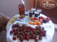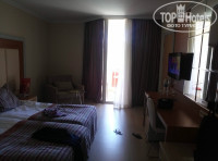 Доброго всем времени суток! 27.05.14 только вернулись на родину, отдыхали с 17.05.14. Дорога от аэропорта конечно не близкая, 100 км+ заезды в отели, добирались около 2.40-3х часов. Заселили нас сразу, не смотря на то, что приехали мы около 10 утра. Отель был почти пустой. Контингент, больше всего поляков, чуть меньше хохлов и немцы. Номера достались хорошие, чистые, комфортные, хороший вид. Но! С дверью в соседний номер. Слышимость в номерах, конечно, это что то. Слышно как соседи дышат, не говоря уже о том, что нам попалась пара, которая ночами не спала, ощущение такое, что девушку убивали, хотелось спасти ее))). Другие, вечно вставали в 6 утра и начинали орать на ребенка, воспитание дело серьезное, особенно на украинском языке!) Сейф 1.5$ за сутки, мы не брали. Убирались каждый день, для вида, два взмаха тряпкой по полу, пепельница и+ 2 бутылки воды. Душевую кабину за 11 дней, мыли раза 2. Сначала оставляли чаевые, потом плюнули, но так ни чего не изменилось. Да и полотенца меняли наши чистые на грязные, обслуживающий персонал не мог долго понять, слово «козявки» и «козюли».(Фото). Питание как всегда, Турция одним словом. Правда было очень мало фруктов, в основном яблоки и апельсины. Один раз давали черешню и не сколько раз зеленую дыню. Но стоило нам выйти за территорию отеля, и мы на 15 $ накупили столько фруктов, что еще и выкинуть пришлось (арбуз, клубника, бананы, черешня, нектарины и персики). Территория большая, три отеля. Раньше была 3ка,4ка и 5ка, теперь это 2 5ки и одна 4ка. Пляж хороший, но вот море не особо для нас оказалось. Очень долгий заход. Идешь, идешь, а тебе все по колено. А там где начинается более или менее глубина уже буйки, заплыв за которые штрафуется на 250 $ с носа. Анимации в первые дни не было вообще, ну или мы конечно ее не нашли. Но когда оставалось дней 5 до нашего отъезда все резко изменилось. Появился чудесный шеф анимации со своей командой, и только они смогли вытянуть отель, в наших глазах на 5ку. Ребятам отдельное спасибо за настроение и за их добросовестную работу и конечно же за улыбки которые они нам дарили. И уж если возвращаться в отель, то только из за них. Больше делать там абсолютно не чего. Вывод таков, после этого отеля по приезду домой, хочется опять на море.