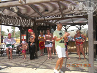 В хургаду влюбилась ещё в первый раз.В Красное море особенно.поэтому приоритетом в выборе отеля ставила море и пляж.выбирала из 4-ок.штудировала отзывы и не прогадала.Хочу оговориться для поездок с маленькими детками лучше поискать другое. Отельчик старенький.до шератона.марины.эль-мамши-добирать только на такси.Хотя сувениры можно купить в фойе отеля.и кальяны.и чаи и магниты.торгуйтесь лучше и упорней-говорят 5доларов-вы говорите2.египтянин за голову давай за 4-вы 2.5 и т.д.Рекомендую там же в фойе магазинчик серебра.продавец Шуша не плохо понимает по русски.серебро покупала выбор хороший(торговаться не забываем)у него же можно спросить где банкомат и т. д.Зелени и цветов на территории отеля-огромное разнообразие(фото прилагаю)номер одноместный.убирали каждый день и лебёдушек и сердечки и цветочки делали!!а главное типо бунгальчика (соседей увидела лишь через неделю)и рядом с морем!! Море-хороший песчанный пляж,шезлонг поставят куда покажешь.полотенчиком застелят.да и коктель принесут если попросишь.своя яхта на пляже.экскурсии.дайвинг и дешевле чем у туроператора.плавный заход в море,буйки.а я дальше в море.чтоб оглянувшись все соседние отели как на ладони,горы.солнце.волны и прозрачно-бирюзовое море!!!!справа небольшие кораллы.если взять маску.захватить в лоби-баре булочку и плавать вдоль пирса рыбок насмотришься самых разных.тут и рыбы-иглы стайками и полосатые и в пятнышки и за пальцы ног клюют.Одним словом-ЗДОРОВО КОрмят разнообразно,кроме сосисек(а они в Египте все для россиянина не съедобные)всё вкусненько.овощей много.фруктов тоже(только на рынке всё равно дыни и персики слаще на много.а стоят копейки по сравнению с нашими ценами)и крабы бывают и кальмары и мидии,рыба.мясо.яйца каждый день.супы хорошие.выпечка свежайшая выше всяких похвал.повара улыбчивые,персонал постоянно спрашивает всё ли хорошо,выпить всегда принесут,что закажешь.Советую записаться в итальянский ресторан.бесплатно одно посещение-Вкусненько .Аниматоры молодцы,Зизо-класная аквааэробика,Тито_утренняя разминка,танцы-супер,а Факир шоу-просто НЕвероятно.вечером на берегу моря и кальян сделают и шоу покажут и дискотека.не хочешь в отеле-езжай в город.там и дискотек и магазинов и кафе хватает. Отдельное слово о массаже.прямо на пляже массажный салон.хозяйка Лена-петербурженка,вышедшая за муж за египтянина.всё объяснит,расскажет,15 минут бесплатно можно попробовать,скидки делают,подход-как надо,Брала курс у Ахмеда_РУКи волшебные,как бывший спортсмен знаю,что говорю,БЫла бы возможность дома такого массажиста найти-проблеммы со спиной ушли бы совсем.а так значительно полегчало. Ехала с позитивом,море чудесное,и всё понравилось.мелкие недочёты,небольшие накладки были как и везде,но не затронули,не отложились.Улыбайтесь больше,здоровайтесь,благодарите и это вернётся.Спасибо Всем,кто делает наш отдых,по такой жаре ребята работают практически без отдыха и улыбаются!МОЛОДЦЫ!