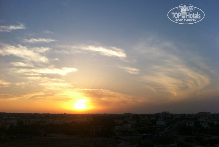 Заселили сразу, номер достался просто супер, на 4-м этаже, с боковым видом на море, закат и район Пернера (чётные номера выходят на северо-запад, т.е. днём можно посидеть на балкончике в тени, а вечером встретить закат, а нечётные соответственно на юг, жару, с видом на бассейн и Протарас). И ещё, ниже 3-го этажа мне кажется моря вообще не видно.