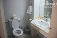 Видимо в отеле прошла реновация, потому что этих ужасных зеленых номеров больше нет, всё перекрашено в белый цвет. Номер очень приятный, фен, чайник, чашки, мыло-шампуни, кондиционер, холодильник, телевизор с двумя русскими каналами (1й и Россия), вай-фай в номерах, что очень удобно(бесплатный!). Убирались каждый день. Переходник на розетку купили сами, а так вроде можно на ресепшене взять. Сейф платный, но мы не пользовались.