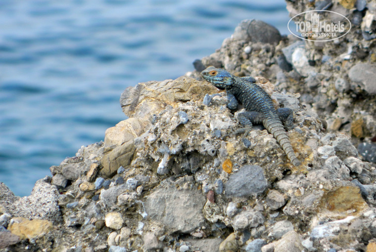 Для тех, кто не любит неподвижно жариться на солнце, к коим отношу и себя, настоятельно рекомендую прогулки на мыс Карабурун с фотоаппаратом в разное время суток. На рассвете заснял этого зверя, пока туристы не спугнули позировал профессионально, он отличался от других ящериц двойным размером и цветовой гаммой. Ещё рекомендую водные прогулки на катамаране, насладиться пейзажами с моря и высадится на остров с затонувшим городом, к сожалению, обещанных черепах я не нашел, но удовольствие получил незабываемое. Учтите 2 момента, не рискуйте в высокую волну, катамаран реально не тянет, хоть закрутись педалями, еле выгреб против течения в открытом море и на остров высаживайтесь по пояс в воду со стороны берега, потом волоком швартуйтесь, иначе можно легко повредить галеру о скалистый берег с вытекающими проблемами, меня предупредили, я вас.
