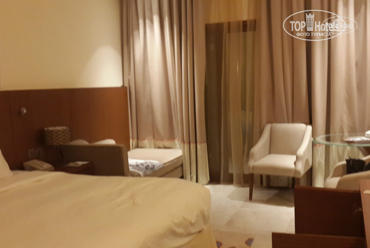 Номер: номер с балконом и видом на море - небольшой, но весьма уютный. В номере: гладильная доска,утюг,фен, банные принадлежности, сейф (бесплатный), мини бар (платный), чайно-кофейные принадлежности, телевизор с 2мя русскими каналами, с возможностью проигрывания фильмов с флешки,кондиционер.