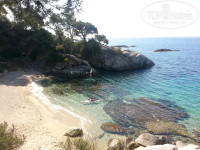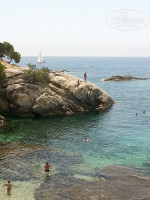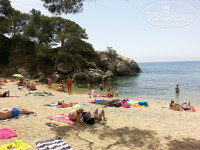 Отель расположен на обрывистом склоне. Основная часть лежаков находится на первом уровне вокруг бассейна. Существует также второй уровень, где также стоят лежаки, есть душ. Именно через этот второй уровень можно осуществить выход на пляж. Пляж муниципальный, поэтому народу всегда много (если не считать раннее утро и вечер). Особенно много народу по субботам и воскресеньям. Местные приезжают отдыхать. Пляж галечный, маленький, входить в воду тяжело, мешают камни. За камнями сразу глубоко. При нас дети купались в зоне 1 метра от кромки пляжа, дальше бы их ни один нормальный взрослый не отпустил бы.
