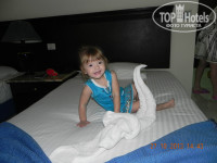 Приехали рано утром (часов 8), ребенок спал. В течении 20 мин. заполнили карточки, разместили в номере. Не открывался балкон, грязновато, уборщик пришел через некоторое время дали доллар - все протер, с дверью на балкон разобрался. Все претензий больше не было. Номер видал виды, постельное и т.д. тоже. Но мы били к этому готовы.