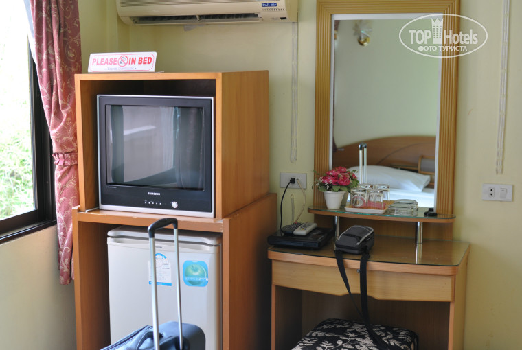 Небольшие тесноватые, но чистенькие номера. Душ, горячая вода, кровать, телевизор, кондиционер, мини-холодильник. Балкона нет. Окна выходят на улицу. Уличного шума не слышно, но слышно, как в отеле гудит толи генератор, толи еще что-то...
