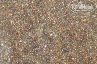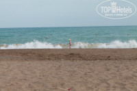 На пляже зонтики, шезлонги, есть бар. Вход в море пологий, мелкая галька и песок.