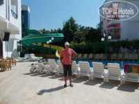 хороший отель,чистый,уборка номера каждый день, хорошее местоположение, до моря 5-10 мин. На собственный пляж возит автобус в 11 часов бесплатно,но он далеко, на нем мы так и не побывали, проще ходить на городской со своей соломенной подстилкой, пляж песчано-галечный. Красивая набережная,протяженностью 12 км., очень красиво, особенно вечером, кафе,музыка, цветные огни.Единственный минус для меня в отеле платный WI-FI. 10$ за неделю.