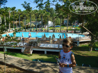 Отдыхала в этом отеле в июле 2013г. с сыном 4 года и подругой. Остались довольны, не смотря на то, что поселили нас очень далеко, с моря ездили на автобусе, а вот после ужина прогуливались с удовольствием))) Питание отличное. Номер убирали хорошо, каждый день. Минусы: старая детская площадка, детская анимация по-русски ни слова (((