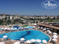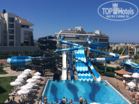 2. Территория отеля очень маленькая, но густо застроенная. Огромный бассейн простирается практически по всей его площади - от выхода из корпуса и до пляжа. Есть детский бассейн, детская площадка. Имеется собственный достаточно большой аква парк, который также разделен на горки разной высоты и крутизны, есть детский бассейн с небольшими горками.