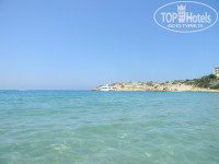 Море..До моря идти минут 20, потом начинается набережная с разными тавернами, торговыми рядами. Есть лесенки со спуском в воду, но мы там не купались. Ездили на Корал бэй, на 615 автобусе, остановка недалеко от отеля: там очень красиво, лазурная вода, песочек, хороший вход в воду, неглубоко. Лежаки и зонтики платно – примерно 2,5 евро за штуку. Но мы отлично лежали на своих полотенцах.
