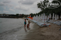 4. Пляж общественный. Шезлонги и зонтики платные - 2 лежака+1 зонтик= 18 левов Водоросли собирают каждый день. Песок и чистая вода. Спуск к пляжу по ступенькам. Писали, что песок лопаткой не раскопать - ерунда, муж с сыном да и другие дети копались в песке, строили замки, закапывали ноги. За полотенца для пляжа и бассейна на ресепшэне нужно оставлять залог 1о евро за шт. Полотенца эти меняют 2 раза в день.