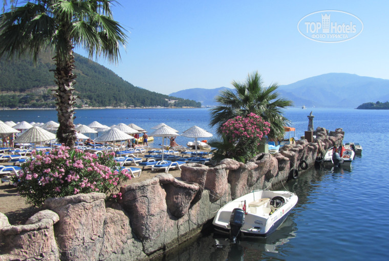 В Турции не первый раз.Обычно ездил в район Кемера.Решил посмотреть Эгейское море.Мармарис ещё удобен для интересных зкскурсий.Выбрал Марти ла Перла.Я в полном восторге от отеля,а особенно от бухты Мармариса.Отель полностью соответствует заявленным четырём звёздам.Расположен вдали от шумного центра-примерно7км.Добиратья до Мармариса очень просто.12-15минут на маршрутке с оранжевой полосой.Стоимость фиксированная 2,5 лиры.Остановки по требованию.В отеле есть всё для комфортного отдыха: хороший глубокий бассейн,сауна и хамам,уютная территория с местами для загара,Хороший бар и отличный пляж в нескольких метрах от территории отеля.Проблем с лежаками и полотенцами нет.Персонал приветлив и работает чётко.Номера нормальные .В виду того,что отдыхает в основном контингент пенсионного возраста ,тихо и спокойно.Есть конечно и более молодые люди,но я думаю они выбрали этот отель по отзывам.Питание без претензий .Не к чему придраться.Всё вкусно и разнообразно.Кто любит морепродукты не будут обижаться.Были и креветки и сёмга и кальмары,а также рыба гриль.Хороший выбор закусок и овощей.Фруктовый стол очень хороший:арбузы,дыни,виноград,черешня,груши,персики и т.д. Пирожных и восточных сладостей всех не перепробовал.Напитки как везде в Турции: пиво и вино приличное ,а крепкие напитки не пробовал.Главное достоинство отеля в расположении.Открывается потрясающий вид на море и горы.Для прогулок отменная дорожка-променад вдоль пляжей вплоть до Мармариса. И самое интересное это разнообразие экскурсий и морских и автобусных. Всё не успел посмотреть,а значит на следующий год опять сюда и только сюда.