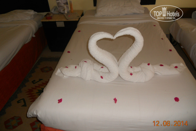 Обратившись к представителю Пегаса, я наткнулся на стену непонимания, мне ответили: "Я что, должна Вам сама номер искать и лампочки менять? Это только Ваши проблемы!". Все мои доводы относительно заключенного договора, необходимости его исполнения и т.д. остались не услышанными. (Кстати, на следующий день в 09.30 у вас будет встреча с сотрудником Пегас, который(ая) тороторя изложит вам всё за 5 минут относительно правил проживания, особенностей страны и т.д., а потом с чувством, толком и расстановкой будет впаривать вам путевки от Пегас, пугая и страшая бедуинами, торгующими путевками прямо на пляже (к этому вернусь позже. Более того, любая ваша просьба и проблема, изложенная представителям Пегаса останется не услышанной. В ответ будет стандартный набор фраз: "Мы за это не отвечаем", "Вопросы не к нам", "Причем здесь Пегас?"). И вновь меня отправили не расепшн. Уже там, прооравшись по-русски матом, пригрозив туристической полицией и судом по возвращении в Россию, в номер добавили кровати, поменяли все лампочки, исправили неполадки в кондиционере и телевизоре. Наконец-то мы заселились!