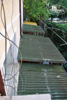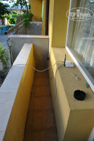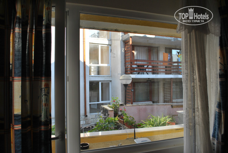 Балкон - малюсенький, под ним - крыши, под которыми отдыхающие едят, громко разговаривают, курят. Дым снизу и запах с кухни все время поднимается в номер, приходилось закрывать дверь. Непрерывно играла музыка.