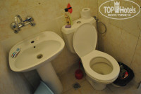 Раковина наклонная, на ней не удерживалось ни мыло, ни шампунь, приходилось ставить на крышку бачка унитаза(!!!). Сантехника с ржавчиной. Полотенце попросила поменять - оно было несвежее, в каплях воска. Принесли два, добавили еще маленькое. Крючка в "ванной" не оказалось. Пришлось просить. Повесили на кафельную стенку, он упал. Пришлось перевесить на дверь. О том, что как нужно чистить унитазы, хозяев надо учить: нижняя часть - коричневая. Я реально такого нигде не видела.