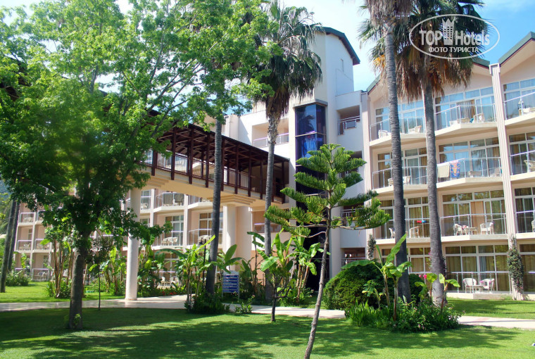Отель с огромной красивой территорией, с ухоженными газонами и деревьями, всюду клумбы, пальмы, декоративные кустарники, хвойные деревья, зелени предостаточно))) Красивое здание самого отеля с огромными колоннами впечатлял не только проживающих в этом отеле, но и гостей соседних отелей, проходящих мимо. Все корпуса соединены между собой переходами лоджиями, проходя по которым любуешься территорией отеля) Комфортные светлые номера, все чистенько, убрано, в каждом номере есть большой балкон.