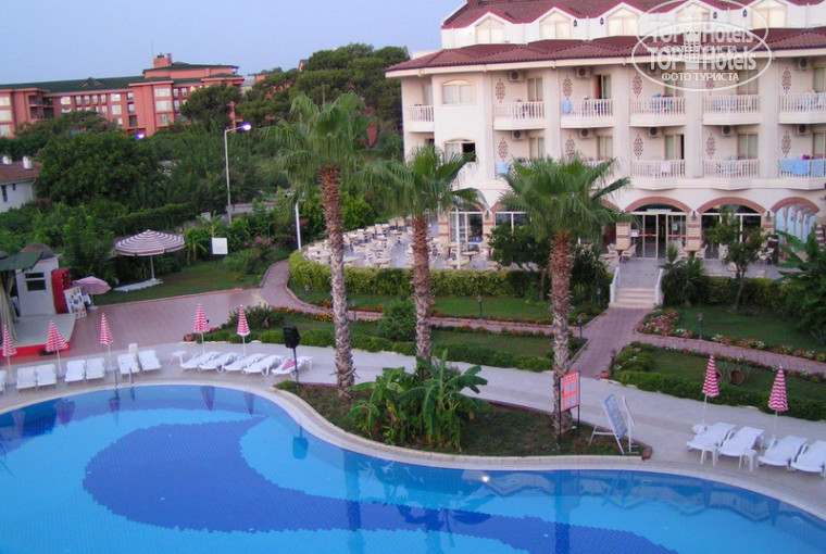 Отель расположен не у проезжей части и это большой +. Кормят хорошо, но я поставил 4 только потому, что еда абсолютно пресная, без каких либо приправ. А так сыт был всегда. И десерты у них ужасные сладкие и очень сильно пропитанные сиропом. В перерывах между едой подкармливают. Мест хватает всем, но если вечером хотите посидеть на улице, то нужно занимать пораньше. Персонал приветливый и доброжелательный. В баре всегда есть что выбрать. Пиво - "EFES"светлое. Только не пейте их разведенные «соки» (аля юпи).