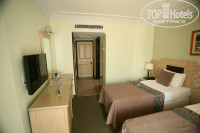 Номера большие, порядка 22 метров.В номере две кровати, диванчик, пара тумбочек, столики, на стене плазма..