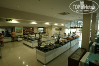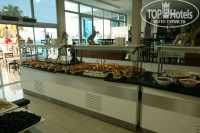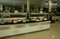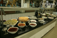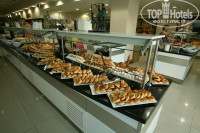 Из сладкого постоянно были кексики- пирожное, маленькие плюшечки видов 10. Рядом стояло вишневое, клубничное, апельсиновое варенье, мед, что то сладкое из арахиса....Из напитков кофе 3-4 вида, молоко, чаи, белое и красное вино, пиво Effes - ешь пей до умопомрачения...Ещё полно всяких салатов, паренных кабачков и баклажанов, помидоров и лука....Пару раз предлагали мороженое трёх видов. Рыба была 2-3 видов, мидии, креветки, кальмары, кусочки соленой форели в салатах...