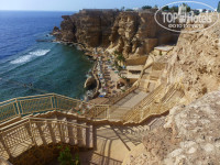 Тут море скорее для любителей плавать и нырять. Глубина на конце понтона от 10 до 30 метров. Рифовая скала по сути