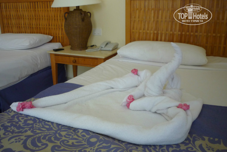 P.S У знакомых номер был 165 (не знаю почему, но у них постоянно пахло канализацией или ещё чем((( ) , зато рядом бассейн. Может потом они устранили эти неполадки... Наш номер (две раздельных кровати), их номер ( двухспальная кровать, диванчик, кушетка). Если Вы едите с семьёй возможно у вас будет номер больше нашего.