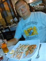 Очень вкусные везде пирожные и мороженное, у нас такое почти не водится. Супы от 10 евро (уха от 18 !!!), мясные блюда от 12, большие креветки от 18 евро, рыба почему то очень дорогая, порция от 30 евро, вино местное сухое от 15, пиво немецкое 0,5 от 4 евро. Пицца и паста просто бесподобные, стоят от 5 евро. Вся еда очень хорошая. В основном ужинали в ресторане Riva Destra в порту на берегу моря. Там работает отличный молодой человек Мариан (из украинского города Трусковец), хорошо говорит по русски и итальянски. Там и русскоязычных много ужинает, можно с ними пообщаться. Вкусно, много и не очень дорого (по итальянским меркам конечно). К русским отношение ровное, ничего плохого сказать не могу. Отдыхают в отеле в основном итальянцы, немного русских. Остров вообще очень не дешевый, и контенгент отдыхающих соответствующий. Все больше смотрят на качество продукта, а не на его цену. Сам остров бесподобен: чистейшее море (даже в порту), прелестные домики, горы и зелень вокруг!