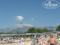Пляж в пяти минутах от отеля. Дорога вся в зелени. Приятно пройтись. Лежаки всегда свободны. На пляже зеленый островок, всегда можно укрыться от жары. Пляж чистый и вода в море чистейшая.
