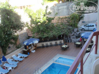 1. Сам отель небольшой, но уютный. С одной стороны дорога, с другой территория отеля с небольшим, но холодным (что просто отлично в жару) бассейном, столиками и баром. Можно было кушать в столовой или на улице (правда, если успеешь занять столик, сообенно на ужин)