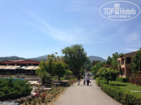 Территория отеля большая, много зелени, пальм, цветущих деревьев и кустов. Около соседнего корпуса цвели липы, такой тонкий медовый аромат, когда проходишь мимо! Мы жили в корпусе Nikolas, номер 315а. Номер небольшой, но красивый вид с балкона на горы. Звукоизоляция плохая, слышно почти все в соседнем номере...но соседи попались тихие, повезло. Никаких муравьев, тараканов и всякой прочей живности у нас не было (как пишут здесь некоторые), может потому что 3-й этаж. Горничные приветливые, убирались хорошо, полотенца меняли раз в 2 или 3 дня.