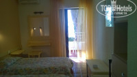 сам отель неплохой, 3 корпуса. номера оч.маленькие, но все работает. ТВ - русских каналов нет. сейф в номере, не знаю, ск-ко стоит: с меня взяли 5 евро/ 3дня черным налом)). холодильник, кондей - есть. на балконе стол, 2 стула. сушилки нет. вай-фай - бесплатно. ловит хорошо, но только возле бассейна/ресторана - до номера не дотягивает. отельный пляж внизу, пляжный бар работает с 10 до 17. есть трансфер туда-обратно 3 раза в день. пешком нереально: ооочень крутые склоны. еда обычная, как в греции, но с мЕньшим ассортиментом - глаза не разбегаются. на ужин, скажем, 2 вида мясных блюд и два вида гарнира. овощи-салаты-выпечка. тоже по усеченной программе. питьевую воду можно брать в номер из бара. (бутылки в номер не ставят). еще там надо убирать за собой посуду после еды)).